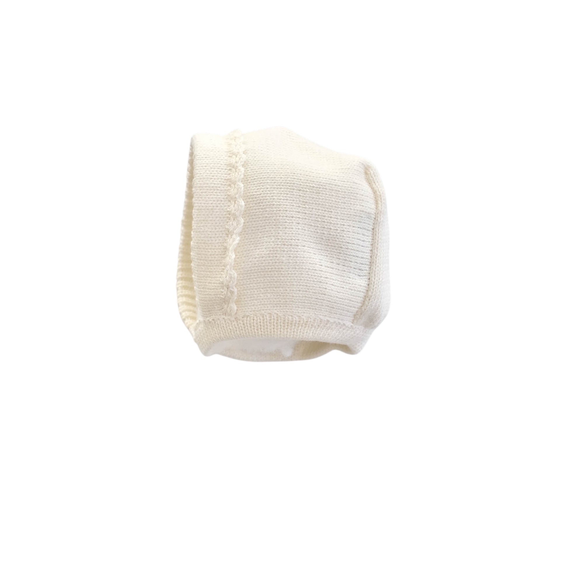 Touca em malha algodão para bebé, modelo picot.